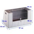 Adaptée aux voitures. Plastique moulé monobloc de très haute résistance. Porte en grillage soudé, entretien facile.