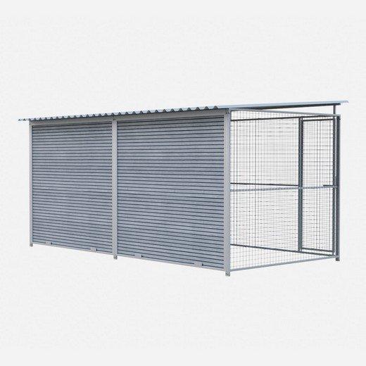 Le chenil MKS est composé de panneaux en composite WPC et de panneaux grillagés.
