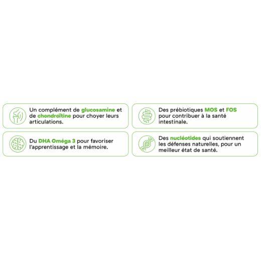 - Favorise une croissance saine et le développement musculaire