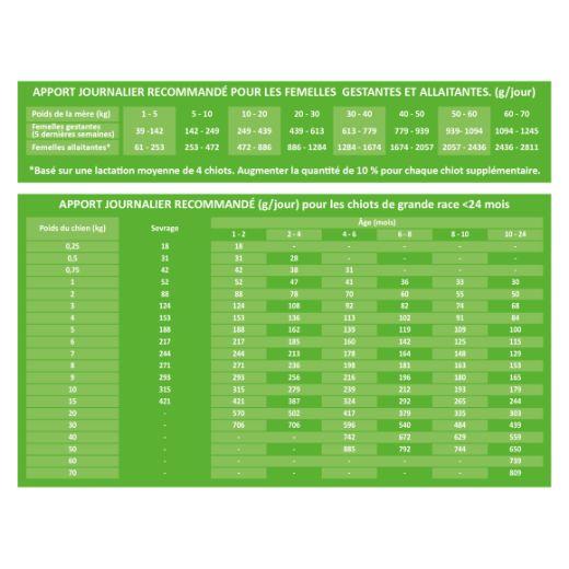Conçue pour les chiots et femelles adultes de grandes races en gestation et en lactation, cette formule complète apporte tous les nutriments essentiels à une croissance saine et au développement musculaire et osseux. Riche en protéines de poulet et de dinde et en ingrédients naturels facilement digestibles, elle soutient également la vitalité et le bien-être général des chiens de grande taille.